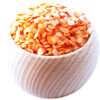 The red football lentil is an edible pulse. It is a bushy annual plant of the legume family, known for its lens-shaped seeds. It is about 40 cm (16 in) tall, and the seeds grow in pods, usually with two seeds in each.